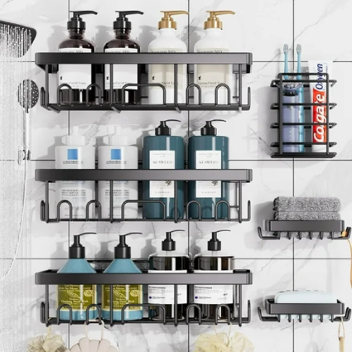 Ophanie Adhesive Shower Caddy 6 Pack, Large Capacity Bathroom Organizers